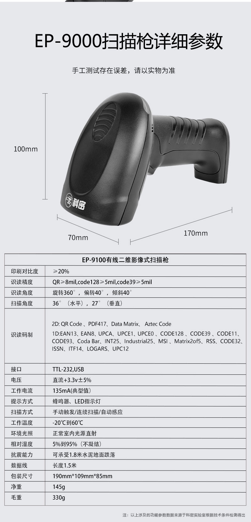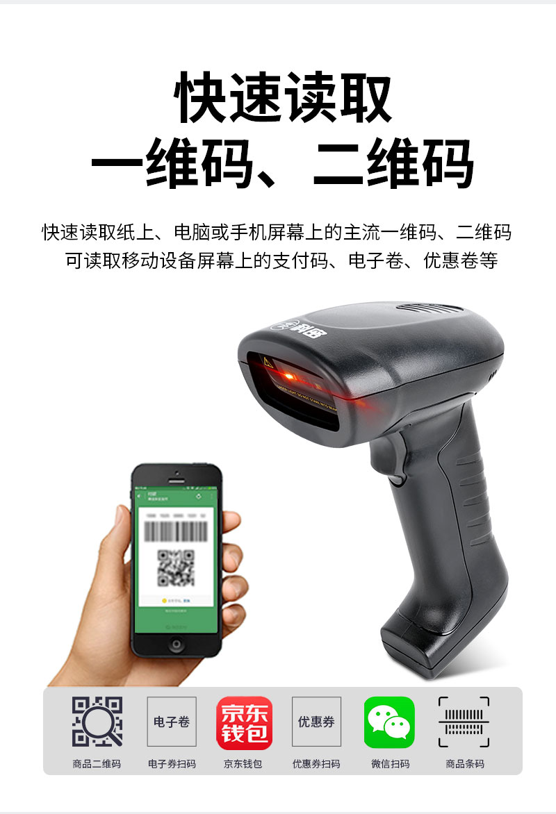 科密 EP-9100 一二维码条码枪 有线扫码枪 商超收银支付仓库盘点快递出入库 可定制