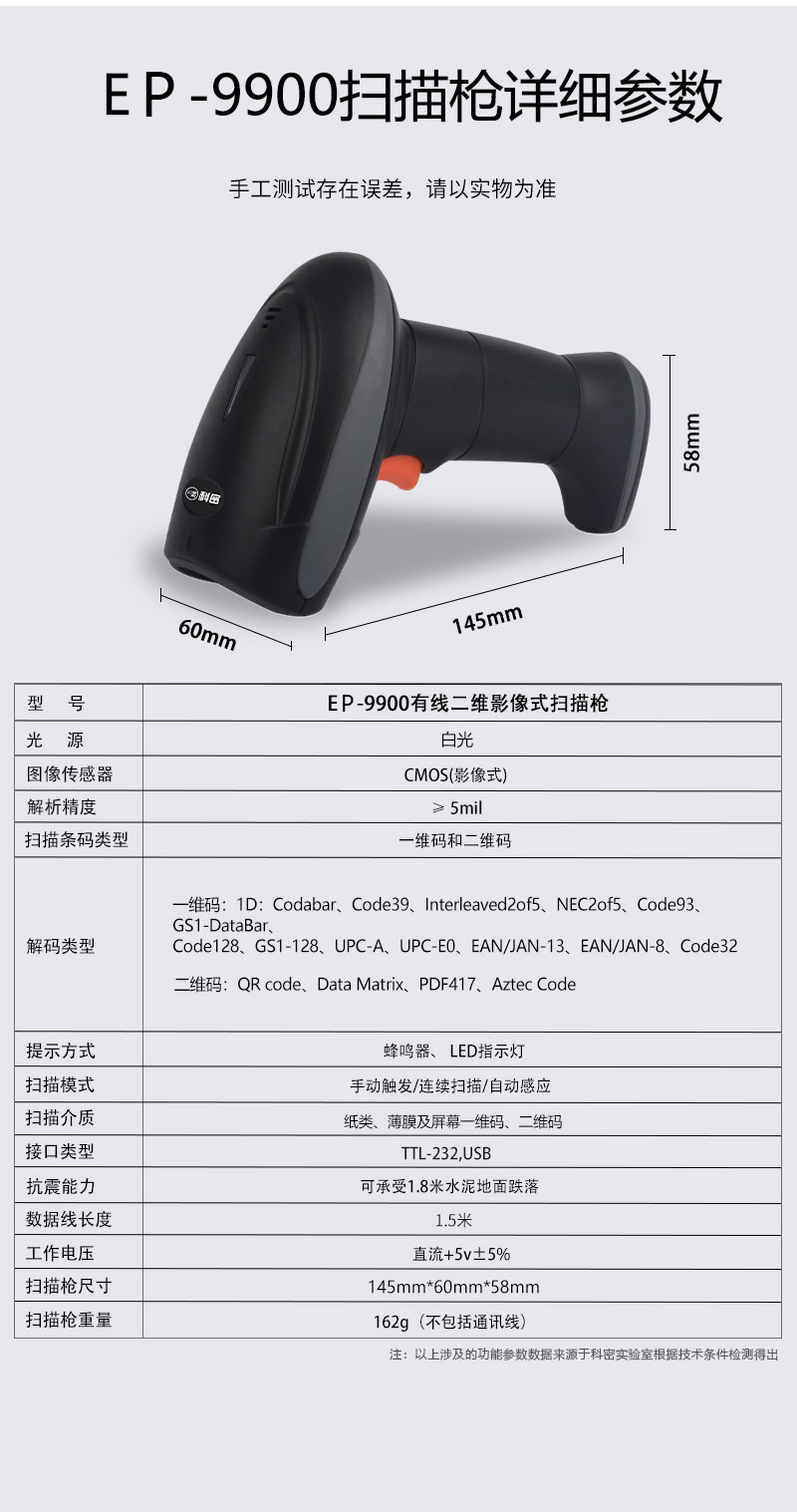 科密EP-9900 有线一二维码扫描枪扫码枪条码枪 纸质屏幕餐饮零售超市收银 农资药店医保码健康码