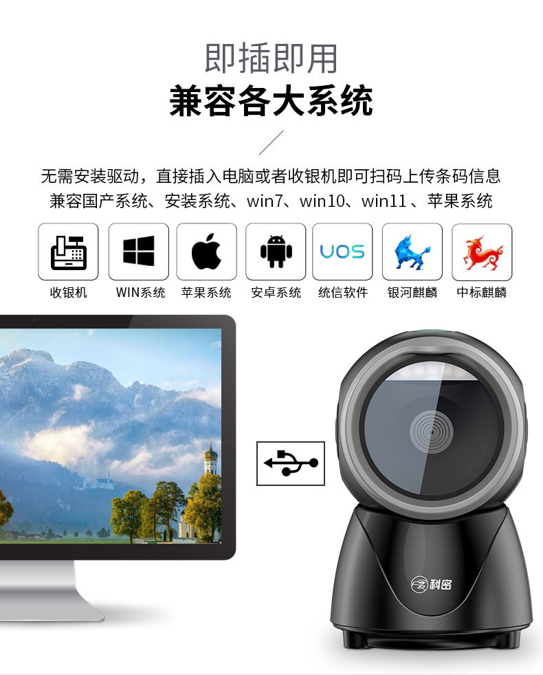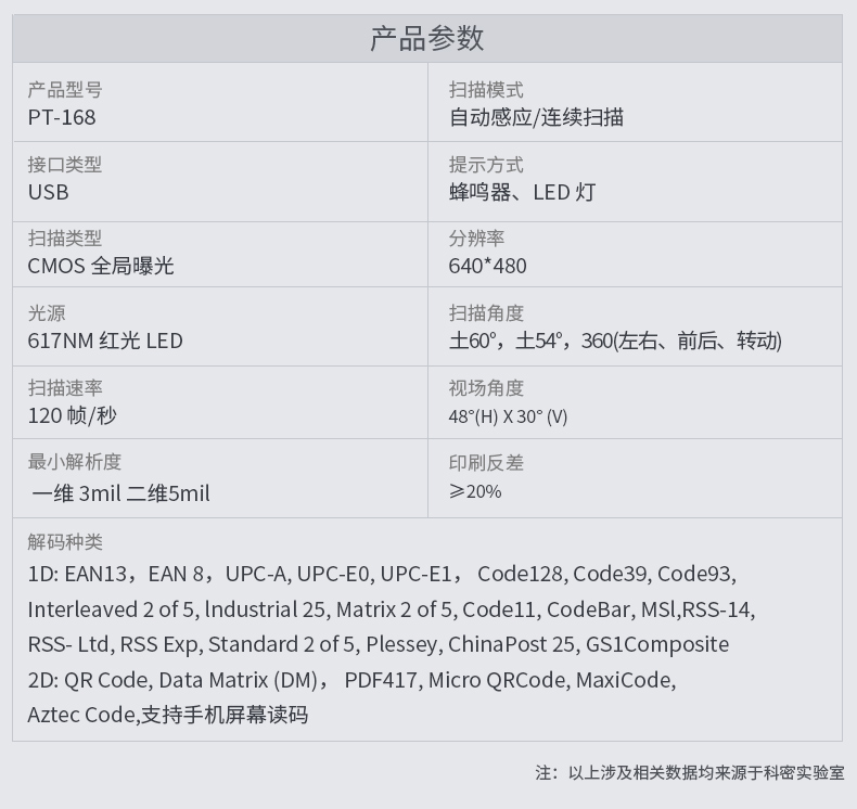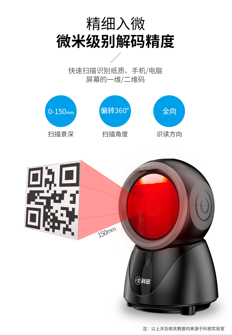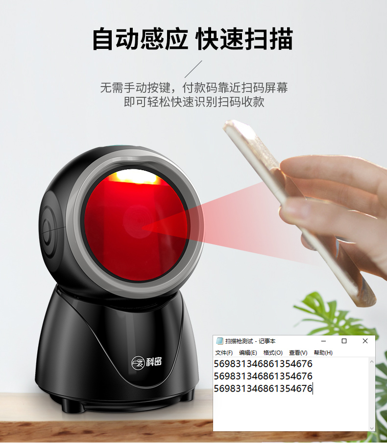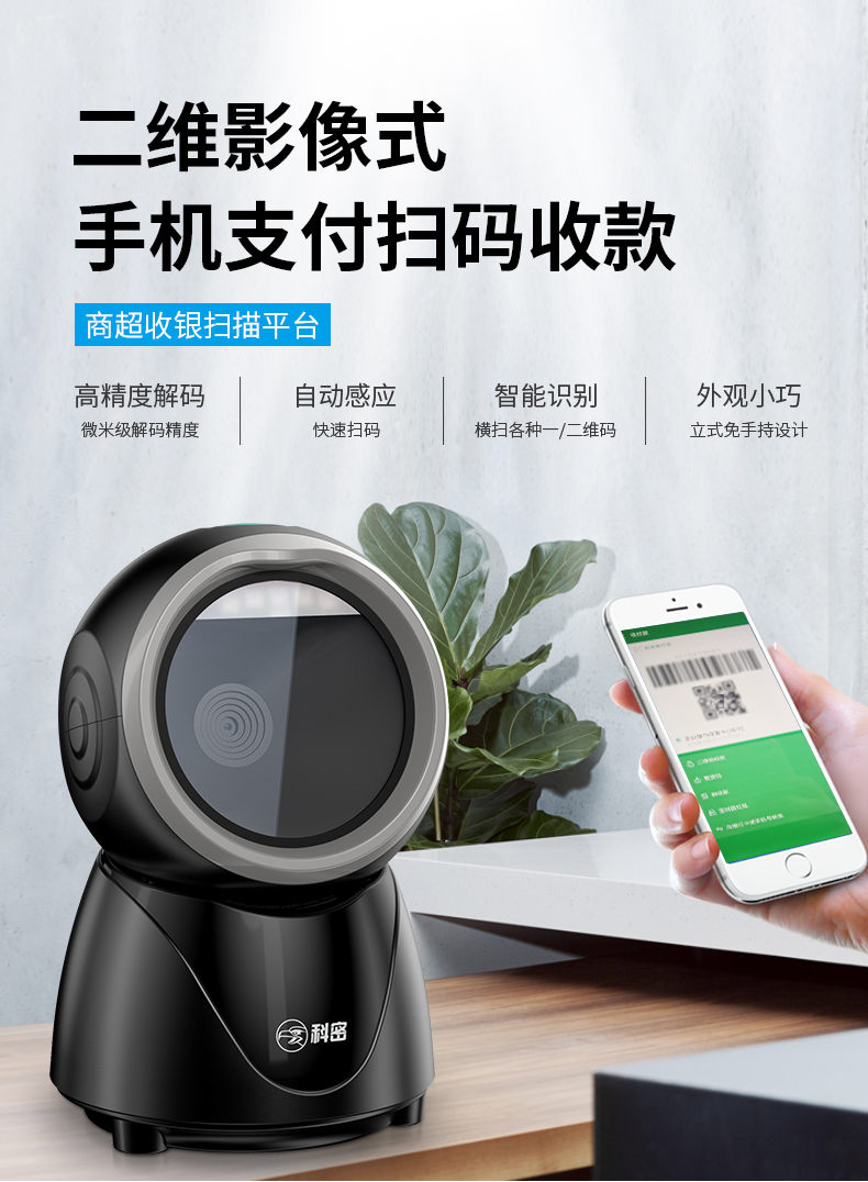 科密扫码枪 条形码 二维码扫描枪 药店商超零售收款 货品条码扫码器 支付扫码盒子PT-168 支持屏幕码