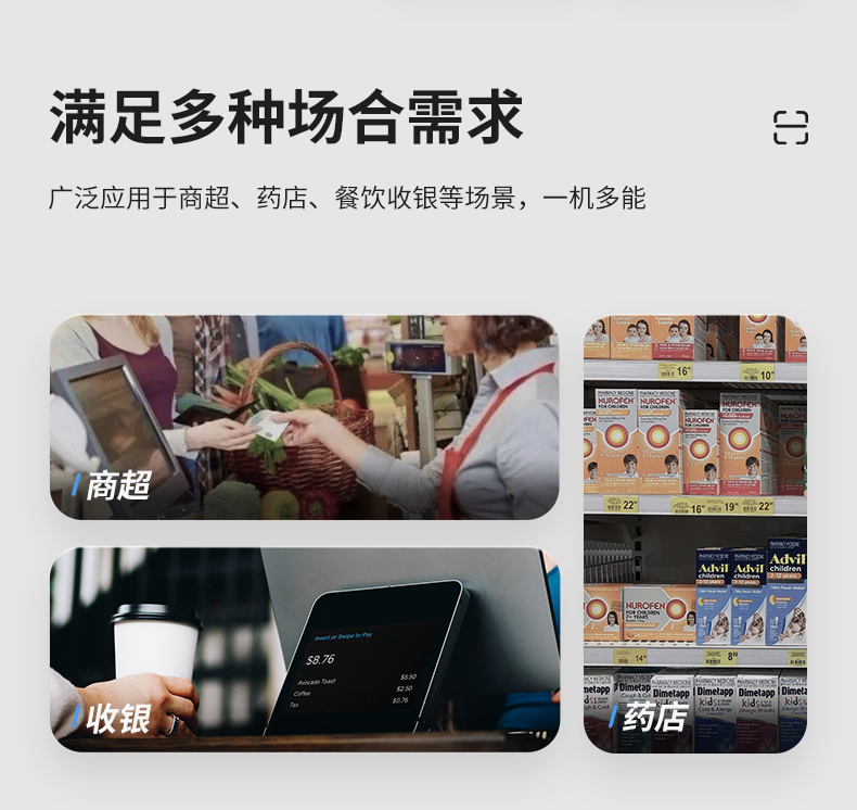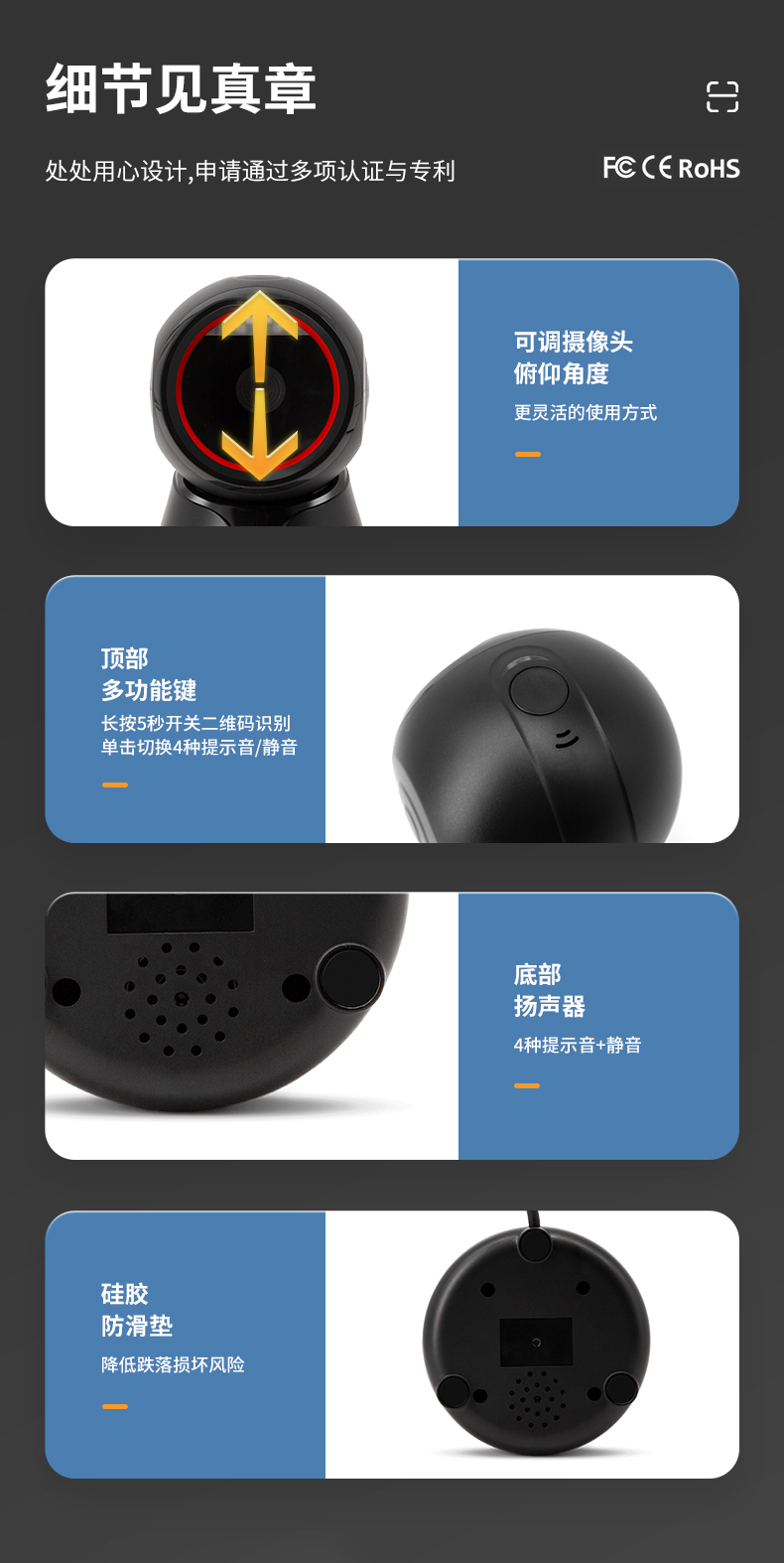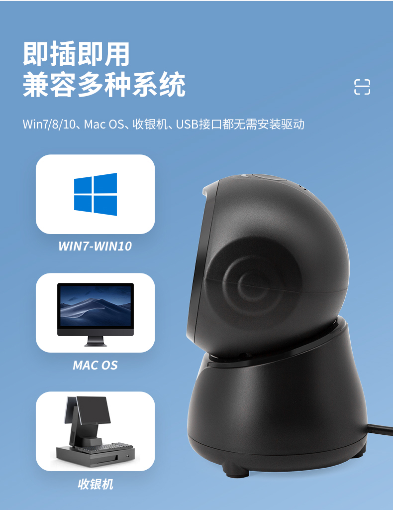 商用收款扫码机一体机快速通用扫描枪一维二维码支付收银扫码枪